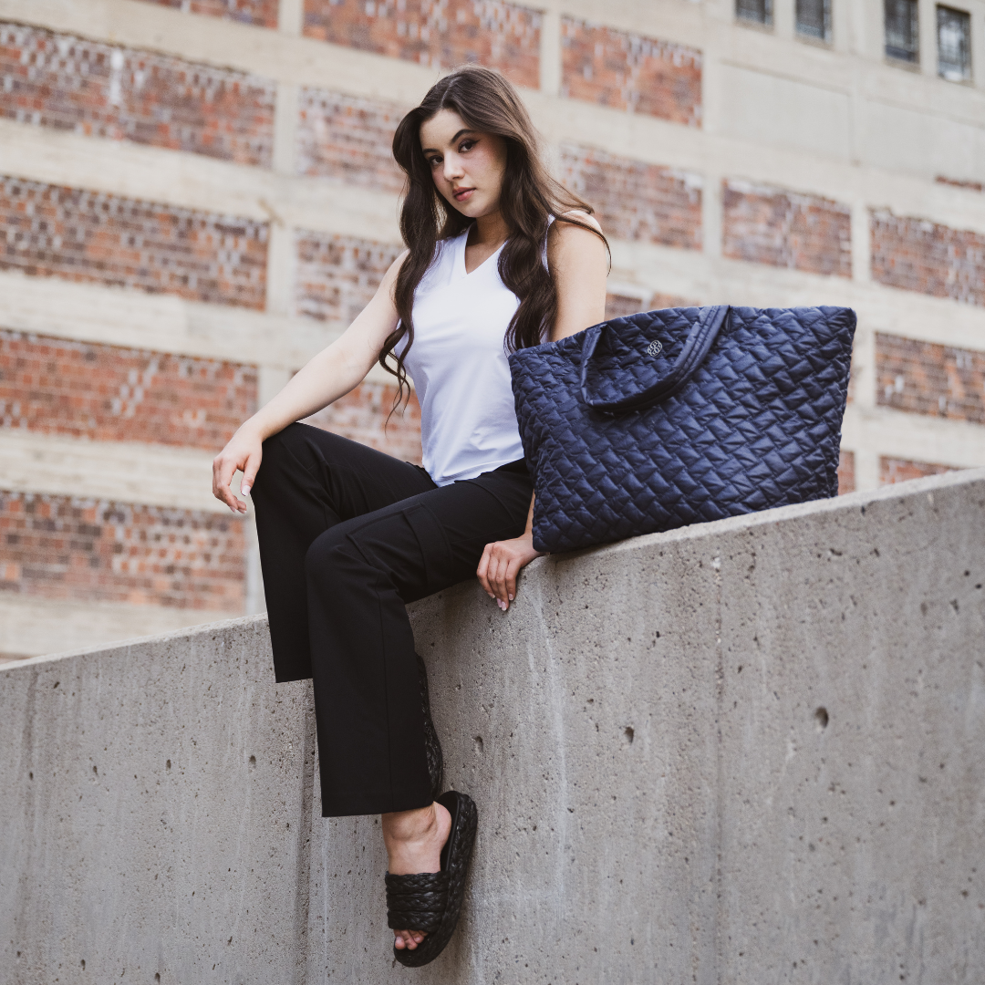 “Our new lightweight quilted bag collection represents the perfect balance between functionality and style,” said Kronovet. This the brand’s first accessory line, an addition to Ameliora’s staples – women’s button-downs.
