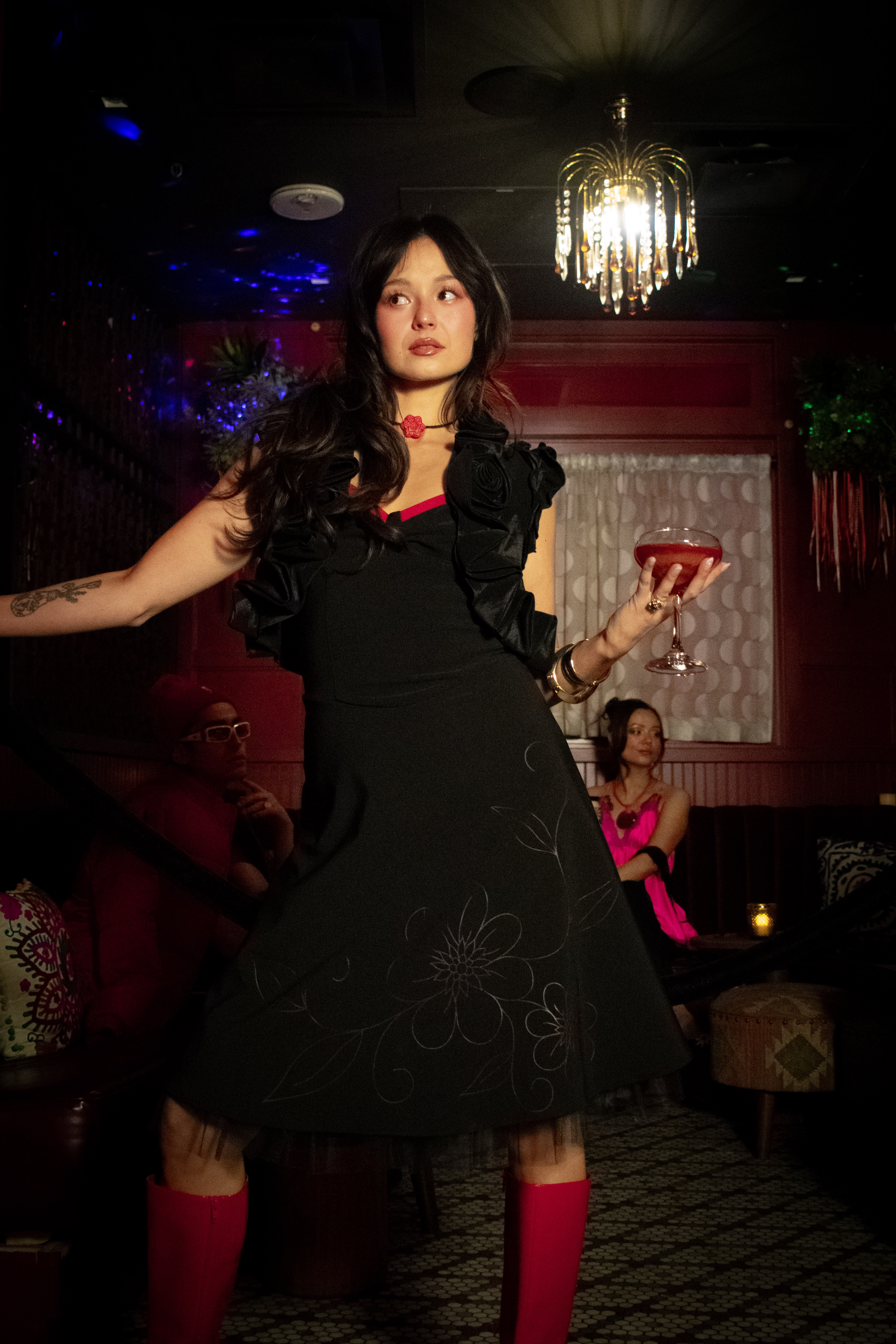 Whether the evening is reserved for a hot date or the girls, we can’t deny that a moody bar with divine cocktails and an ambiance meant for connection is a must on Valentine’s Day. That’s why The Curio Cabinet took a tour of our favorite love-inspired cocktail bars and restaurants in the city ahead of the holiday. With the sultry booths and cascading lanterns of Bao Brewhouse; and the twinkling lights and a sweet smoky scent of mezcal that is Ghost Donkey as the settings, lead stylist and thrift connoisseur Lisa Mae of Thrift Girlie assembles looks that have hearts stopping and jaws dropping. She’s shared an array of additional looks fit for the day of love, bringing to life showstopping pinks and reds in unique ways.