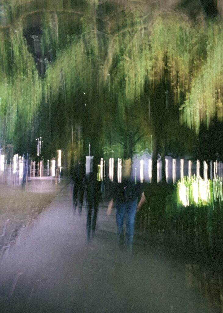 They’d looked at the light too long. No one should be able to stare into a bulb like that. Maja, you good? They didn’t blink but pulled their bloodshot eyes away, fixing them back to their roommate’s face. Yes, sorry, spaced out. They resumed their conversation about the house show that weekend. Multiple friends’ bands were on the bill. You’re coming to this one, yeah? Maja nodded. Sick. An old vampire movie flickered on their old TV. They watched in silence, both lost in their heads. I’m going to bed. Night. Maja said goodnight but stayed in the living room, focusing hard on the TV. Their eyelashes like bug’s legs ringing around two eyes. Sweat wetted their forehead from the effort, willing their face not to betray them. Their eyes flitted once to the lamp. A millisecond. A small hit. Maja licked their salty upper lip. It would keep happening. They knew it. They couldn’t stay up all night again. They closed their eyes, fumbled for the lamp, and pulled the cord. They turned off the TV. No light, no light, they chanted to the scattered void. The misty 1 a.m. darkness continued beating their mood to a pulp. It had been dark for eight hours already. But at least there would be sweat and blisters and music and hickeys soon. So soon.