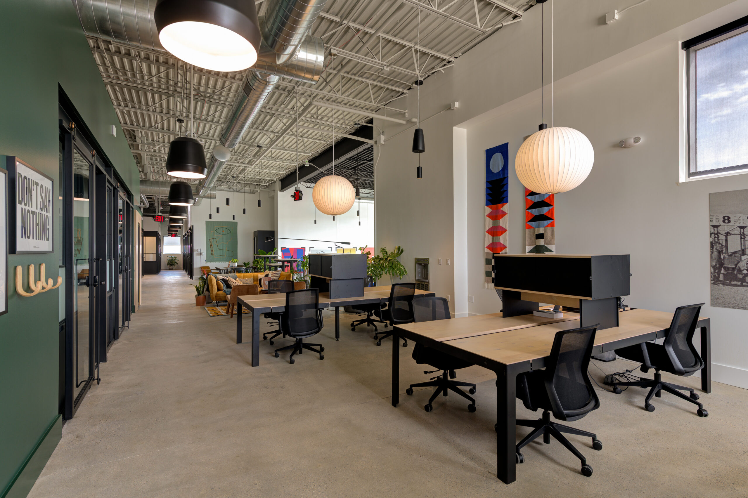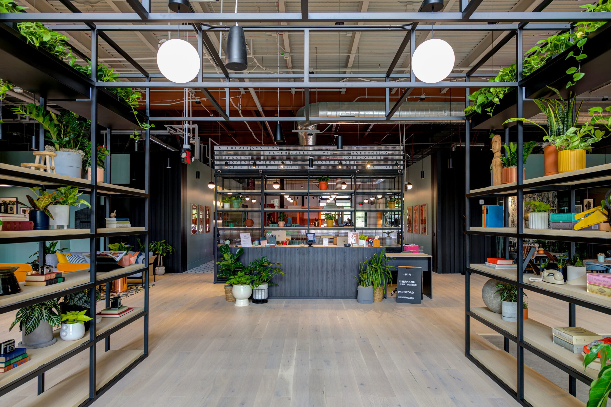 In an unexpected shopping center behind a red brick façade lies a serendipitous treasure. As you open the glass door, you pass through a vestibule into what feels like an art exhibit. Greeted by color, 5-foot-tall posters, 20-foot ceilings, plants, and endless pieces of furniture, your eyes and mind attempt to take everything in. Immediately wondering where you are, you begin to travel down a tunnel of sorts until you reach the heart of it all: the reception. You are at Kiln, the newest coworking space in Littleton, unlike the average coworking space you have been in before. Consisting of open desks, lounge areas, conference rooms, a theater space, private offices, focus rooms, quiet nooks, podcast space and a communal kitchen, Kiln makes it so you never want to leave.
