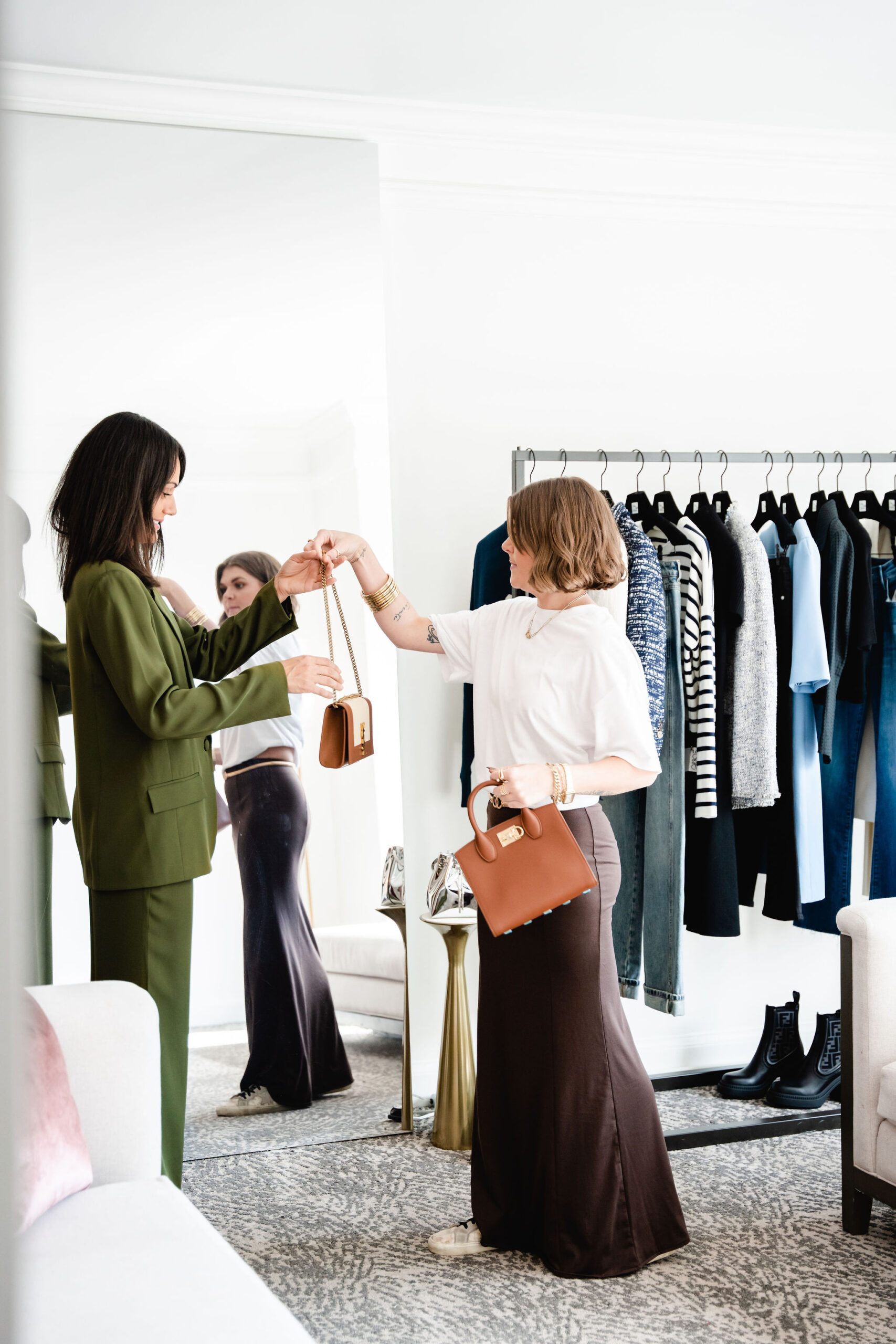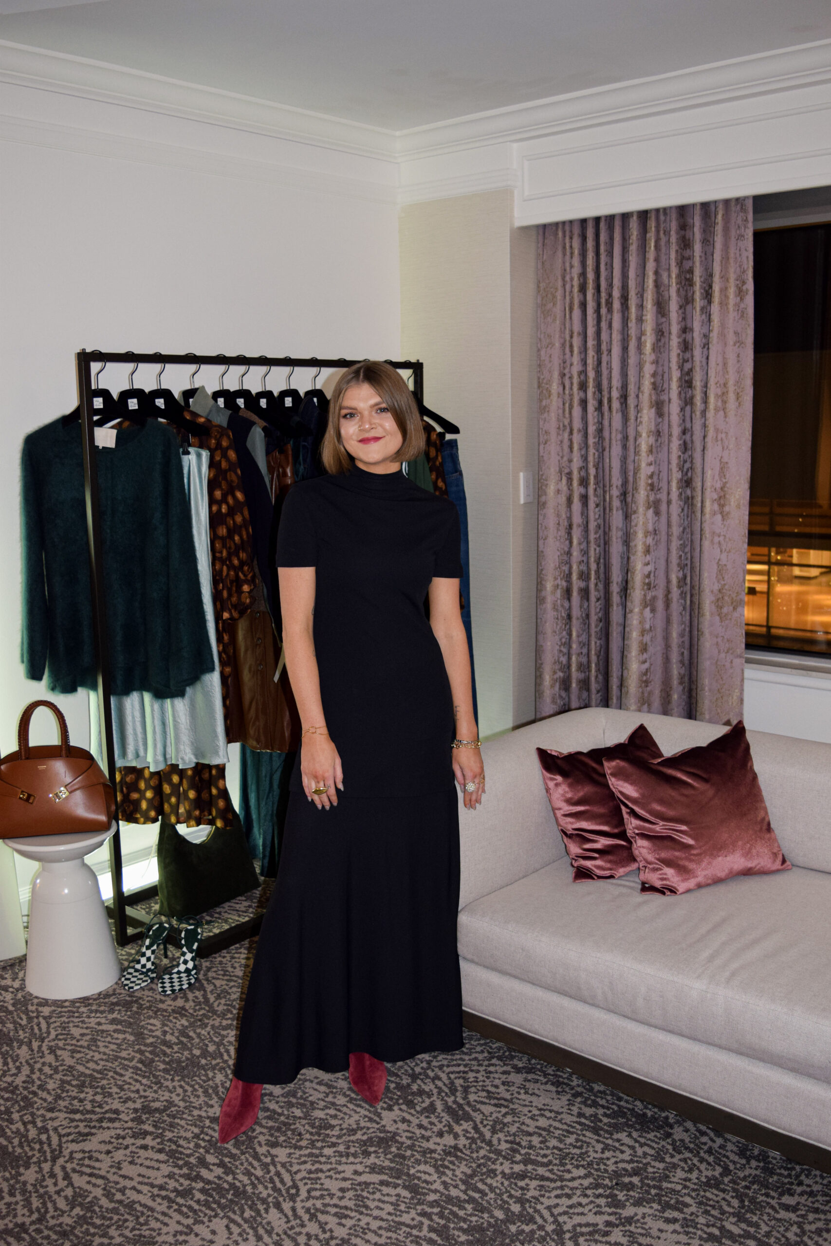Once you’ve chosen either a glass of prosecco or espresso provided during the appointment, your styling journey is ready to begin. When you arrive, everything on display in the suite was specifically chosen by your stylist and will cater to you in size, style, etc. If there are items needed outside of what is provided in the suite, Carroll can share a digital lookbook with the client after the appointment.