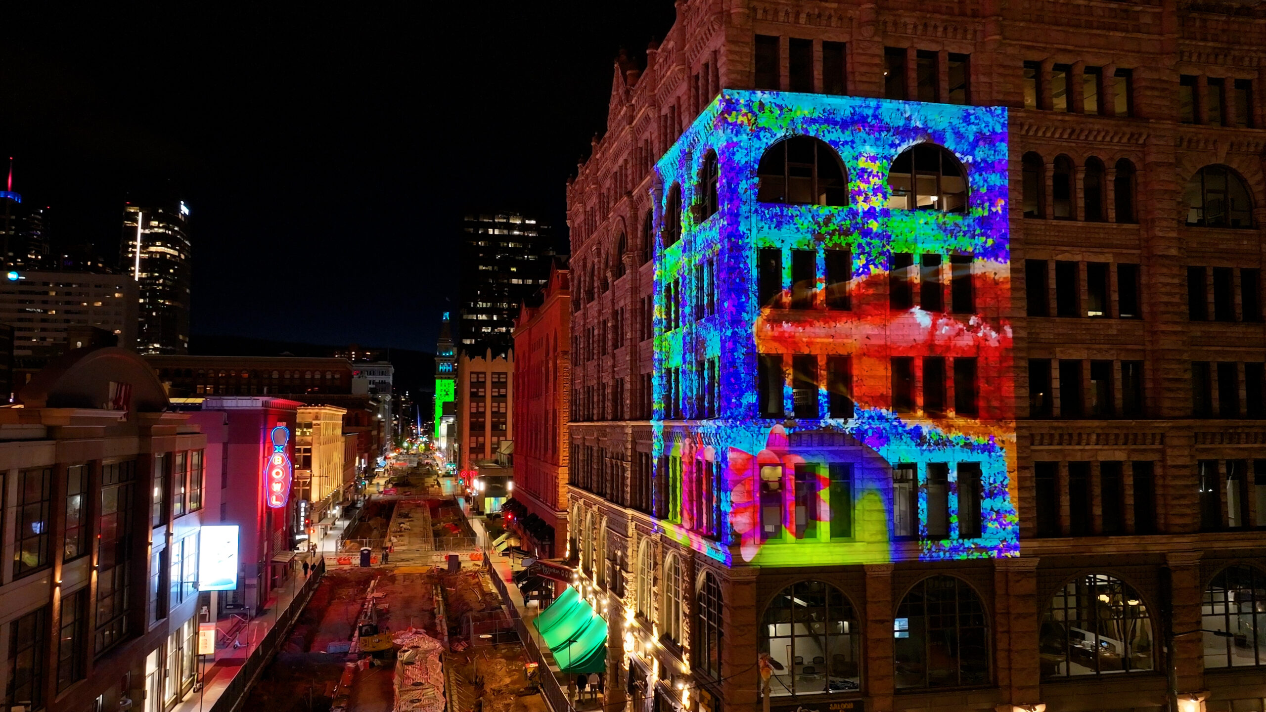 Night Lights Denver recently expanded by launching the second projection on the side of the Kittredge Building. The DTD has also hosted several window installations called “SPARK” over the last few years to bring projection mapping to other areas within the city.