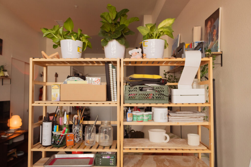 Dinh’s desk sits behind a beautiful window, illuminating the studio with warm light. She began her business in October 2020, and many may not know that this was a collaboration between her and a friend. Both were creative, awkward and uncomfortable, leading to the business name. However, Dinh’s partner decided not to continue this endeavor, and Dinh became the sole creator of the studio.
