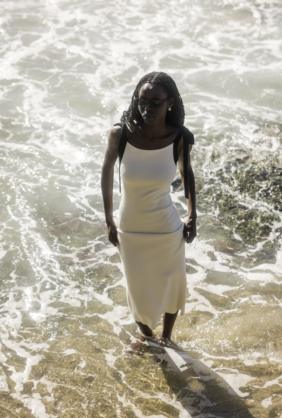 “Every Nello June piece begins with a feeling—usually something tied to summer, nostalgia, or a place I wish I could escape to,” said Stone. Her creative process starts by picturing the customer. Knitwear’s fluid nature makes the material unique; how the wearer styles it is crucial.