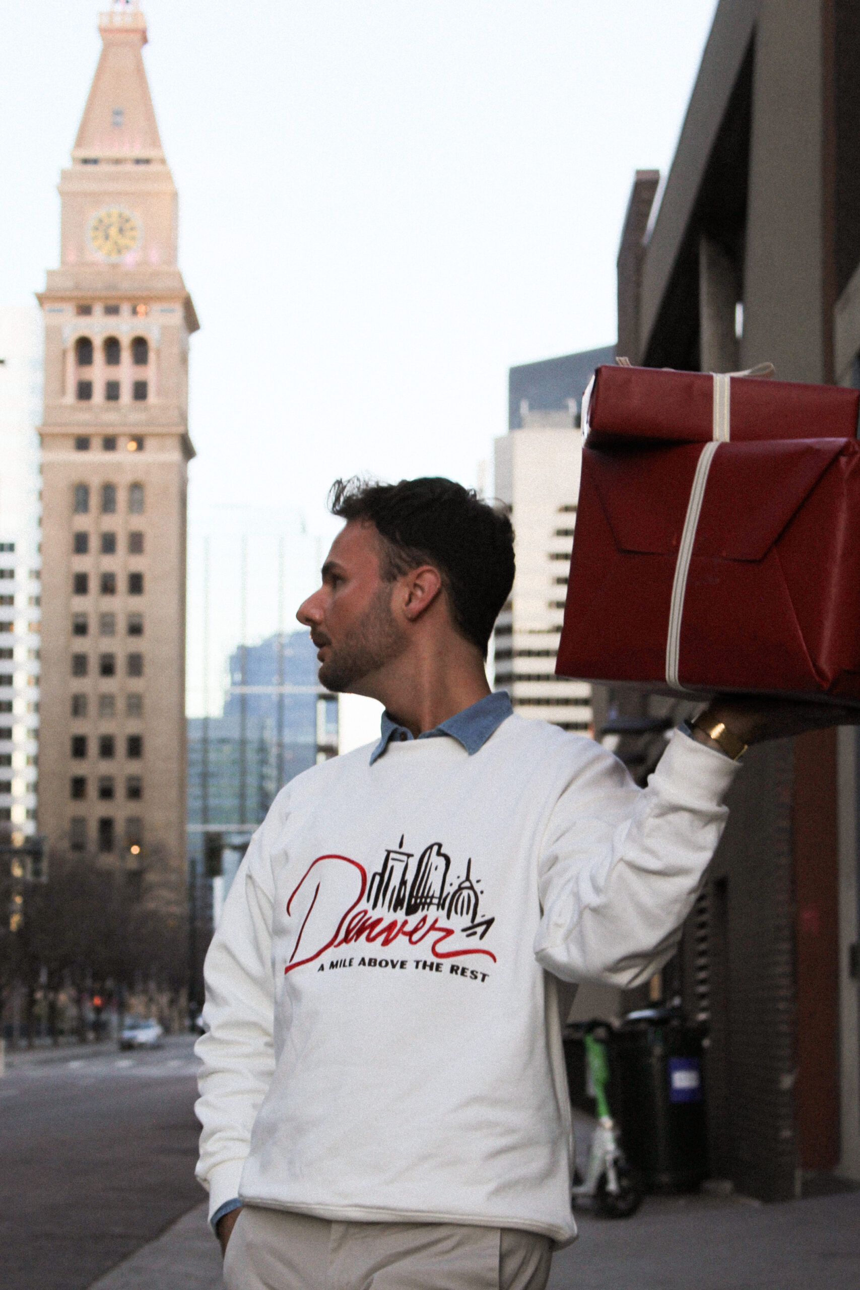 So far, this collection includes an oversized 100% cotton sweatshirt designed with embroidered city landmarks and a bold red ‘Denver’ on the center front, accompanied by a tagline underneath that says ‘A mile above the rest’. The sweatshirt also features an embroidered red ‘28th’ on the cuff. The design itself feels vintage and classic Denver, a relic to be passed down through the years to come or something to be cherished and collected.