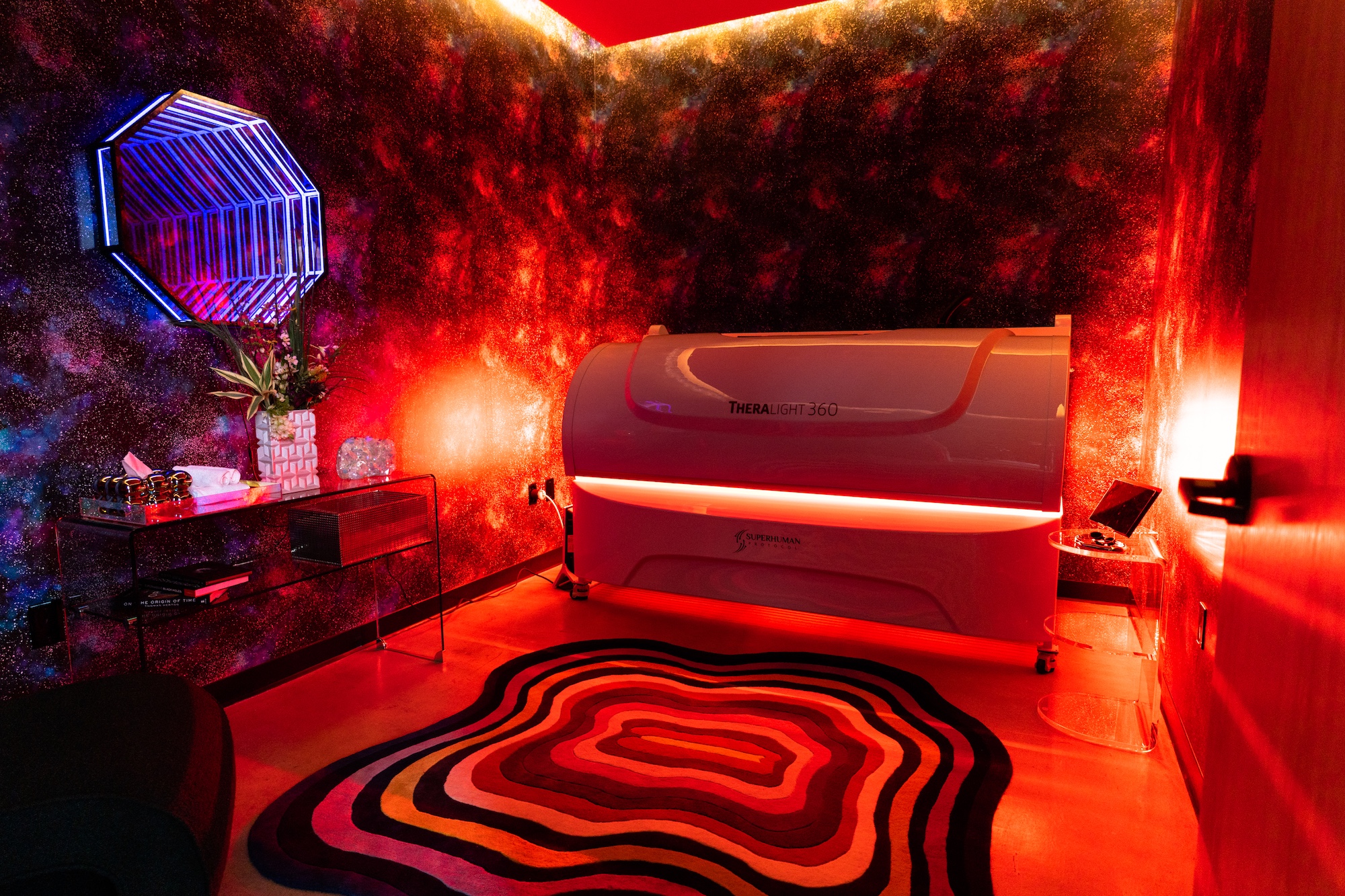 What sets Sacred Society apart is its range of unique wellness modalities. In addition to vibroacoustic therapy, users can explore immersive sensory virtual reality pods that transport them to meditative landscapes, guided by technology that responds to the body’s cues. The peaceful Zen garden hosts sound sessions blending ancient practices with contemporary sonic healing techniques. Perhaps most intriguing is their photobiomodulation therapy capsule — reportedly the most powerful on the market — using specific wavelengths of light to energize cells from within in a cool, space-themed room.